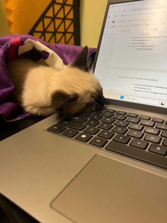This past year has been a powerful testament to the resilience of our community. We began 2025 still rebuilding from Tropical Storm Helene, then faced the challenge of devastating county-wide wildfires. As spring arrived, we navigated a surge of kittens, remaining at or near capacity for much of the year. In August, I was honored to resume my role as Executive Director, returning to an organization that has grown so impressively since my departure in 2018.