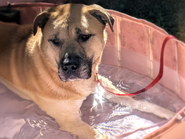 With a resilient spirit (and a great sense of irony), Tank decided he still loved water—just on his own terms. During each playgroup, we constantly found him plopping into the dog area’s kiddie pool with no hint of trepidation or fear.